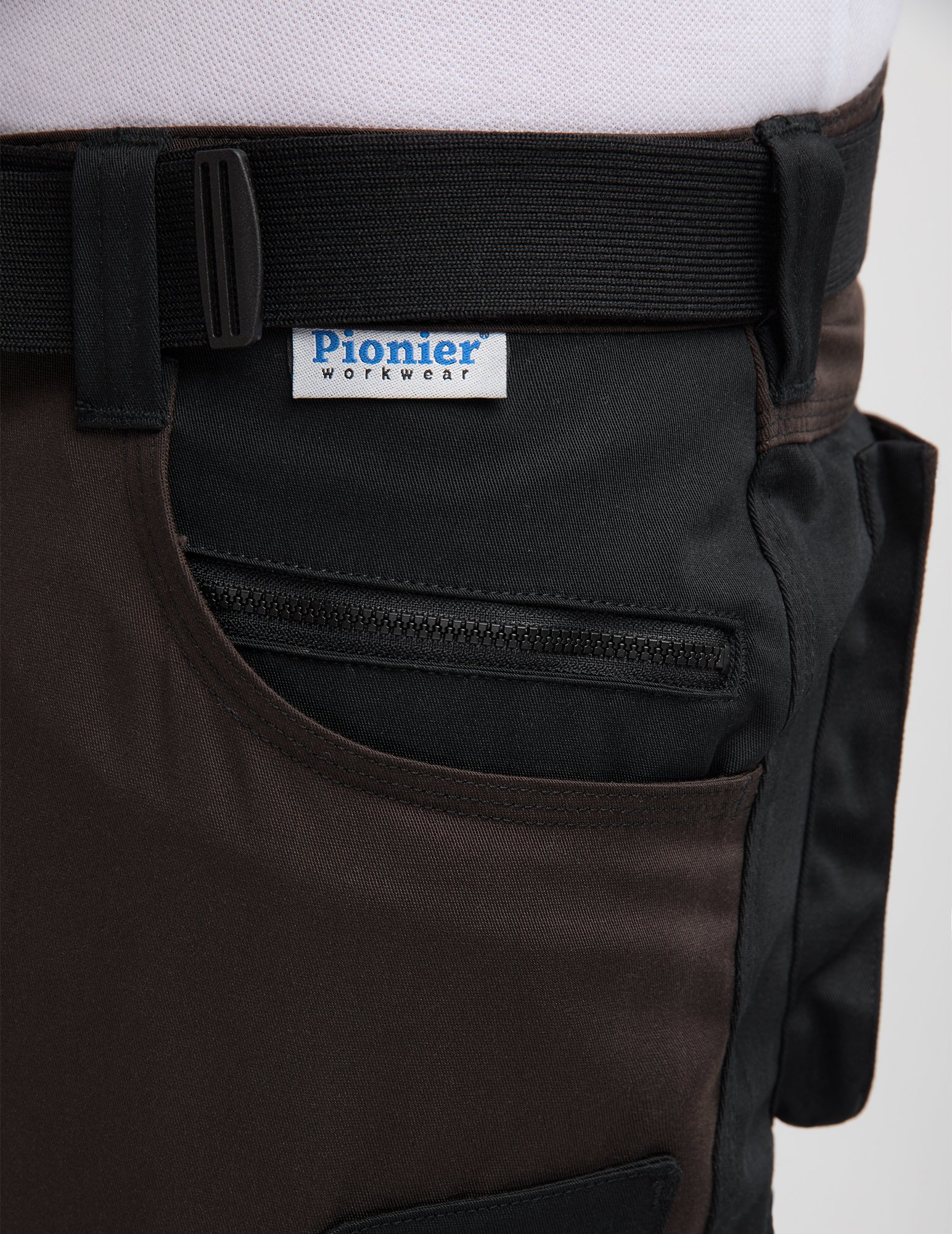 Entdecken Sie die Pionier Workwear Bundhose Tools und freuen Sie sich auf eine moderne, zweifarbige Hose für den Berufsalltag. Die Hose ist mit Cargo-, Zollstock- und Gesäßtaschen ausgestattet. Hinzu kommen noch Handytasche, Stiftfach, Reißverschlusstasche und Kniepolstertaschen. Insgesamt verfügt das Modell über elf Taschen. Dank des praktischen Anfassers lassen sie sich schnell und flexibel öffnen. Abgerundet wird die Hose durch einen hochgezogenen Bund mit Stretcheinsatz. Auch die Dreifachnaht und die sechs Gürtelschlaufen verleihen der Berufshose eine hohe Funktionalität. Für mehr Komfort im Arbeitsalltag sorgen die Stretcheinsätze und die moderne Schnittführung. Ein weiteres besonderes Merkmal der Bundhose Tools sind die auffälligen Reflexpaspeln.