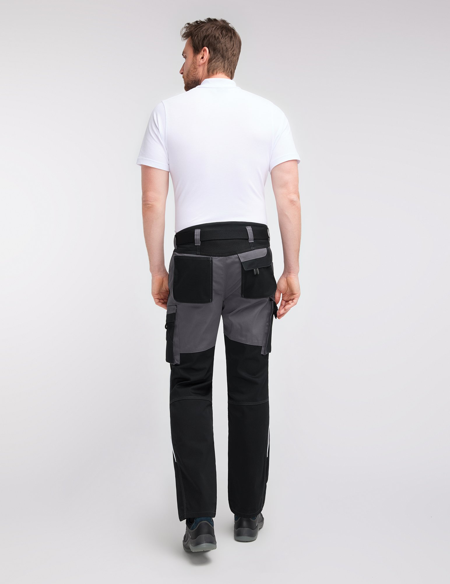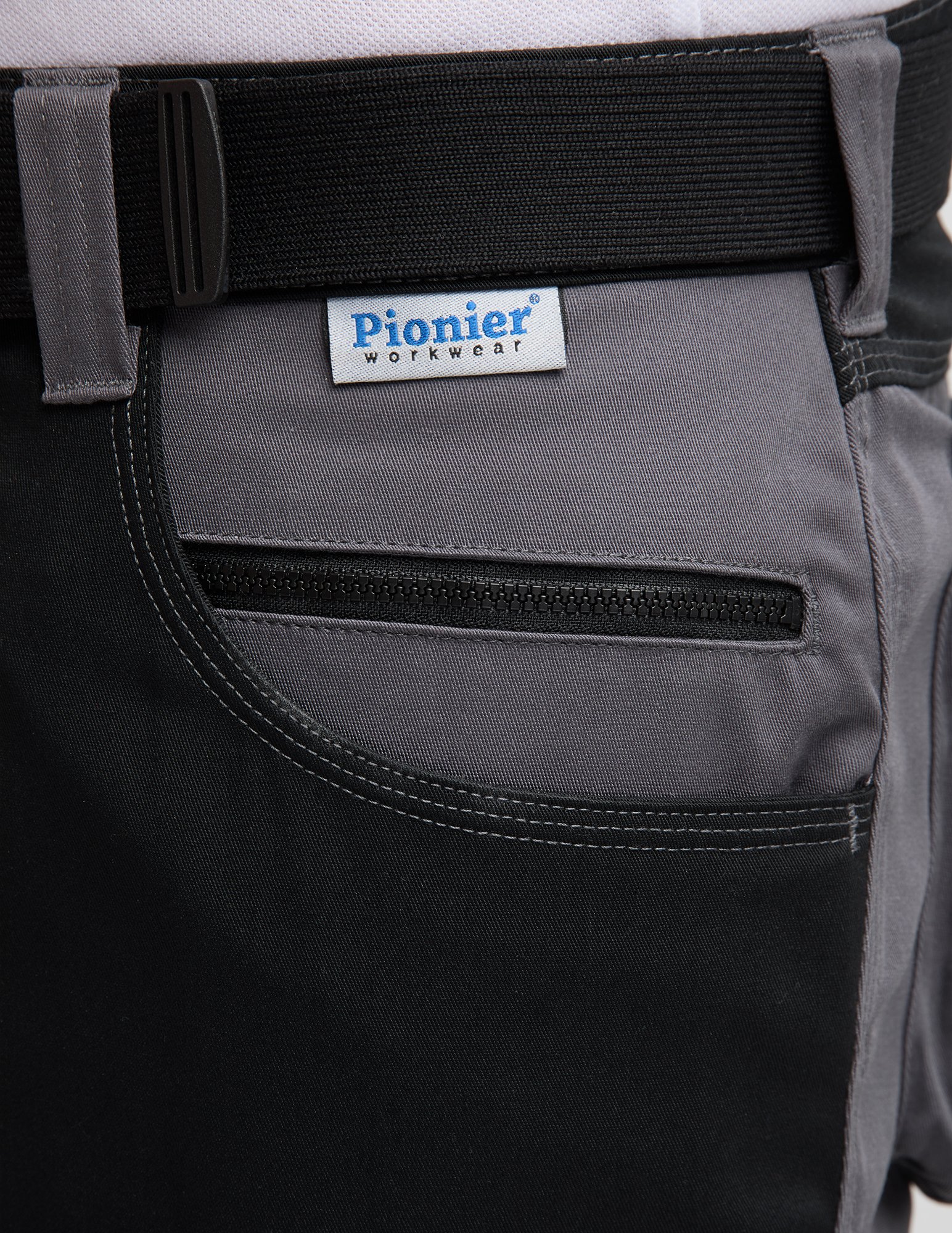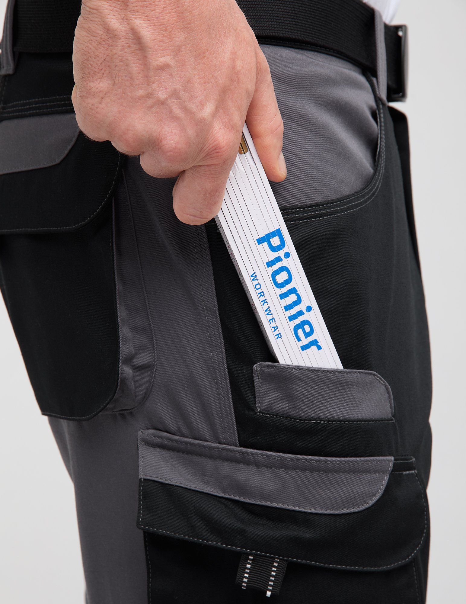 Entdecken Sie die Pionier Workwear Bundhose Tools und freuen Sie sich auf eine moderne, zweifarbige Hose für den Berufsalltag. Die Hose ist mit Cargo-, Zollstock- und Gesäßtaschen ausgestattet. Hinzu kommen noch Handytasche, Stiftfach, Reißverschlusstasche und Kniepolstertaschen. Insgesamt verfügt das Modell über elf Taschen. Dank des praktischen Anfassers lassen sie sich schnell und flexibel öffnen. Abgerundet wird die Hose durch einen hochgezogenen Bund mit Stretcheinsatz. Auch die Dreifachnaht und die sechs Gürtelschlaufen verleihen der Berufshose eine hohe Funktionalität. Für mehr Komfort im Arbeitsalltag sorgen die Stretcheinsätze und die moderne Schnittführung. Ein weiteres besonderes Merkmal der Bundhose Tools sind die auffälligen Reflexpaspeln.