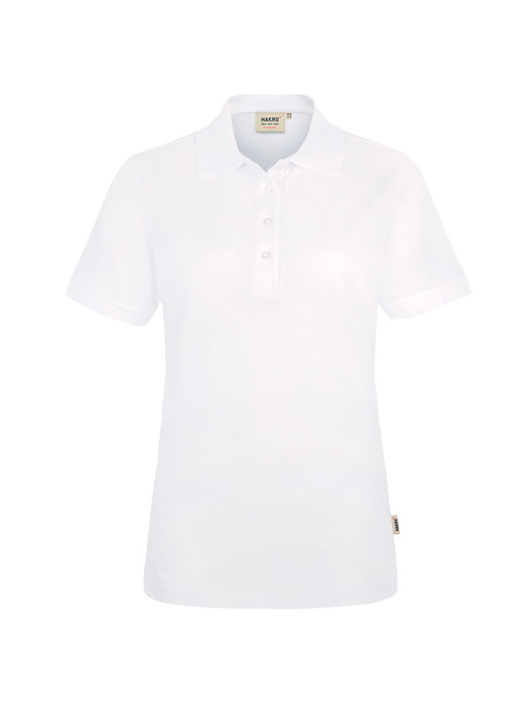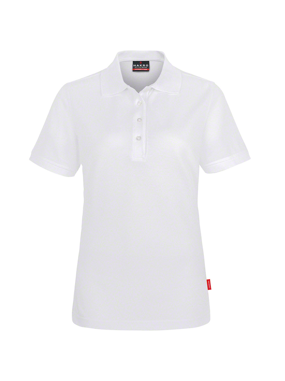 Besonders strapazierfähiges Poloshirt für Damen, mit hochwertig verarbeiteter, modischer 4-Loch-Knopfleiste mit extra haltbar angenähten, bruchsicheren Knöpfen, Ton-in-Ton mit dem gelaserten HAKRO Schriftzug. Mit Ersatzknopf, Nackenband und doppelt geriegelten Seitenschlitzen. Leasingkoller zur einfachen Kennzeichnung in der gewerblichen Wäscherei und Aufhängebänder im Saum. Hergestellt aus weichem, besonders pflegeleichtem und funktionellem Piqué aus dem HAKRO Performance-Materialmix Mikralinar®. Gewebtes HAKRO Necklabel aus hochwertigem Kettsatin mit weichen, ultraschallgeschnittenen Bandkanten für höchsten Tragekomfort und gewebtes HAKRO Flaglabel an der linken Seitennaht.