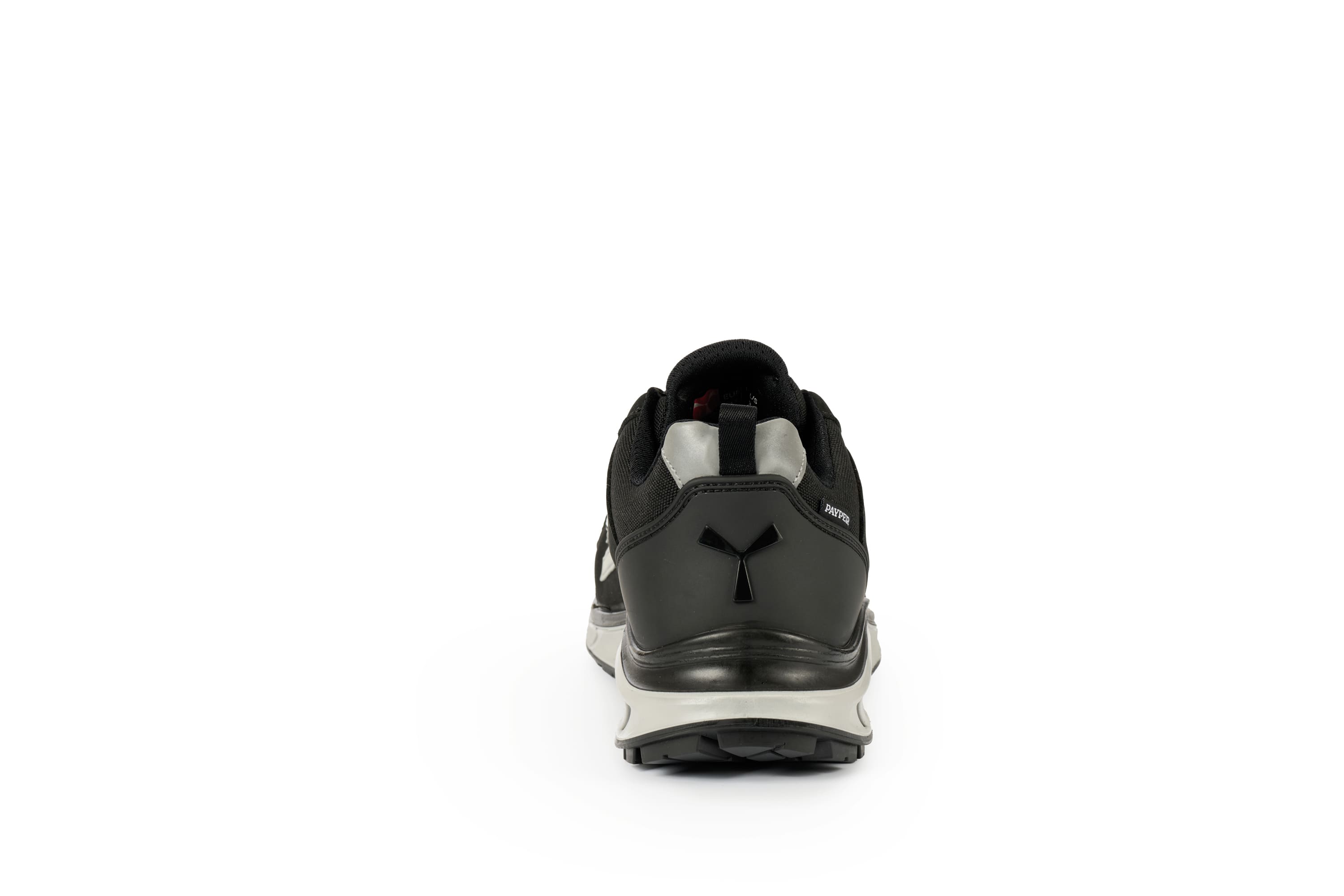 Sicherheitsschuhe mit Obermaterial aus Nubukleder. Atmungsaktives und abriebfestes Innenfutter. Verstärkte TPU-Hinterkappe und abriebfeste Schuhspitze. Leichte und strapazierfähige Zehenschutzkappe aus Glasfaser. Ultraleichte durchstichfeste Folie. Herausnehmbare Pulsar-Cushioning-Schuheinlage aus PU mit zweierlei Dichte und offenem Zellsystem, ergonomisch, antistatisch und stoßdämpfend. Zwischensohle aus ultraleichter PU-Mischung mit zweierlei Dichte. Erste Zwischensohle für angemessene Dämpfung und langfristigen Komfort. Zweite Zwischensohle für mehr Stabilität und richtigen Halt. Extrem hydrolyse- und verschleißfeste TPU-Lauffläche. ESD-Sicherheitsschuhe.