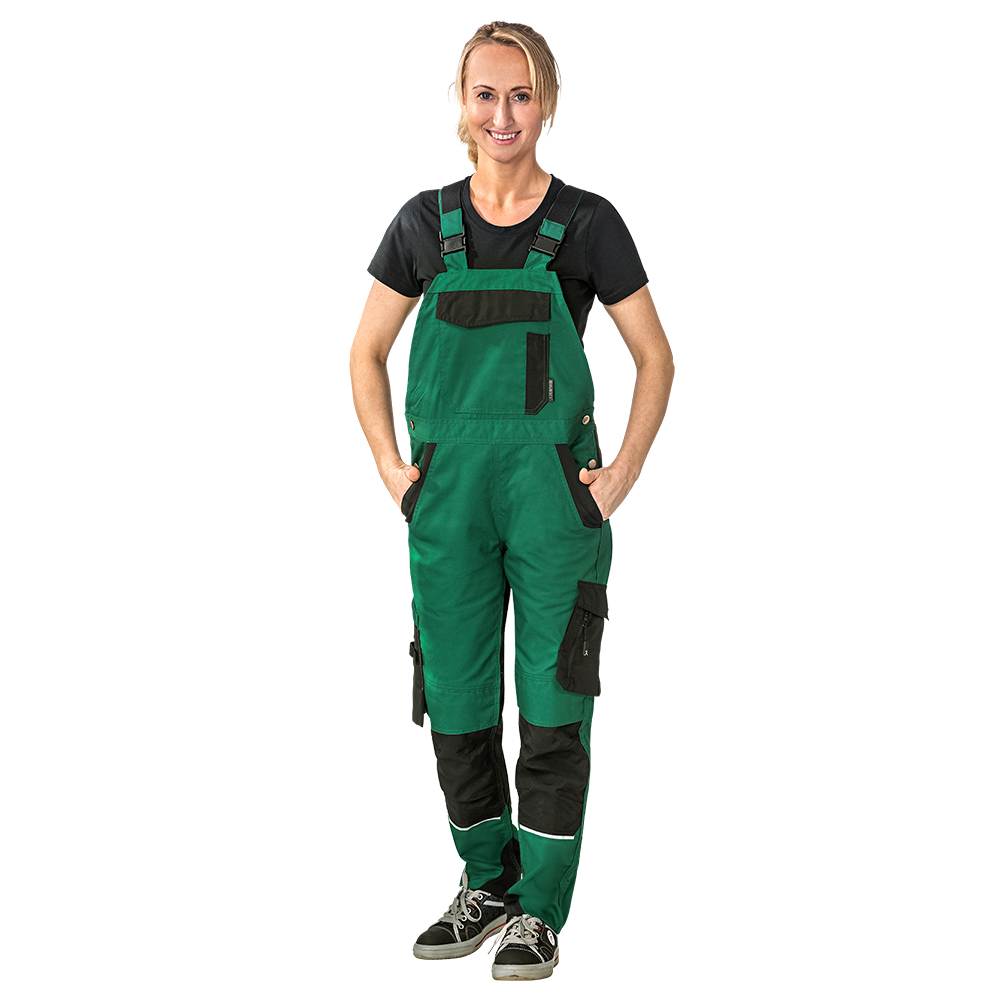 Die Taschen der komfortablen Latzhose aus Mischgewebe bieten Stauraum für alles, was Sie benötigen – ob Smartphone, Werkzeug oder Kleingeld. Elastische Einsätze am Sattel und im Schrittbereich verleihen hohe Bewegungsfreiheit.