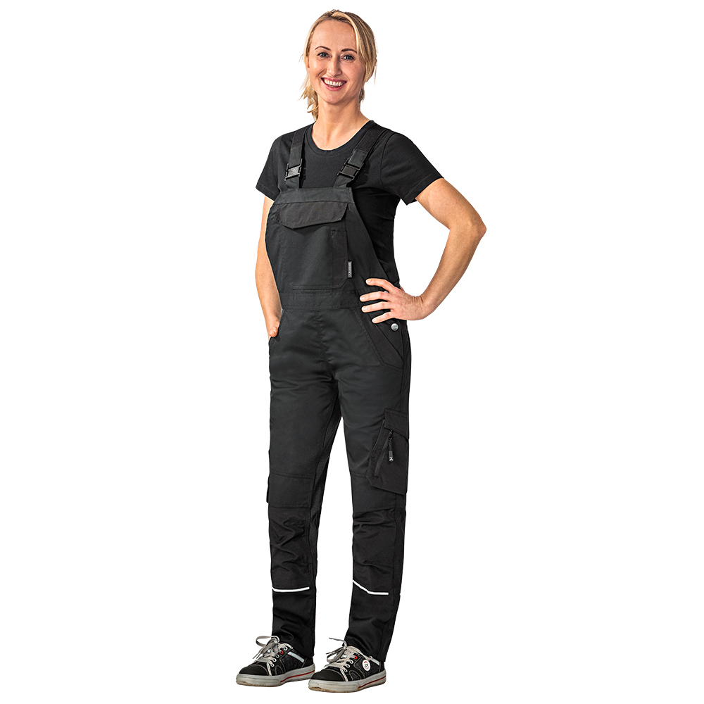 Die Taschen der komfortablen Latzhose aus Mischgewebe bieten Stauraum für alles, was Sie benötigen – ob Smartphone, Werkzeug oder Kleingeld. Elastische Einsätze am Sattel und im Schrittbereich verleihen hohe Bewegungsfreiheit.