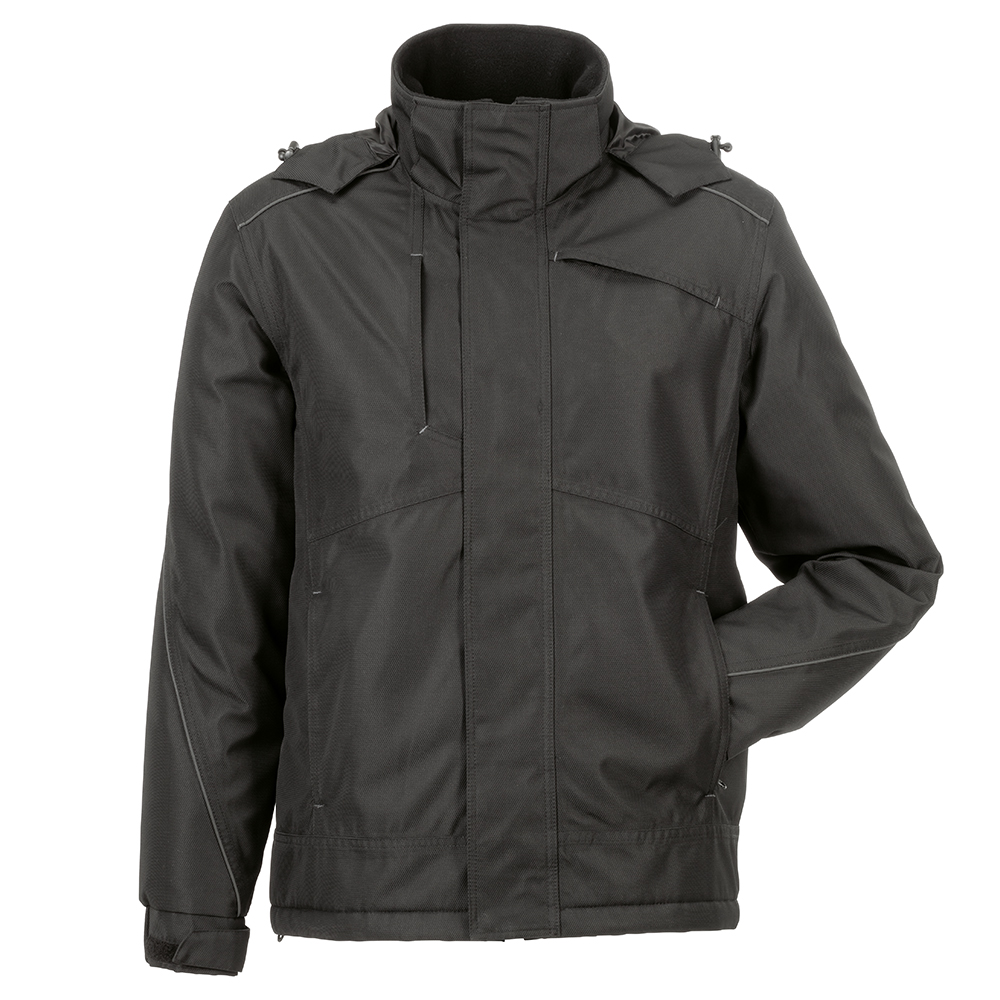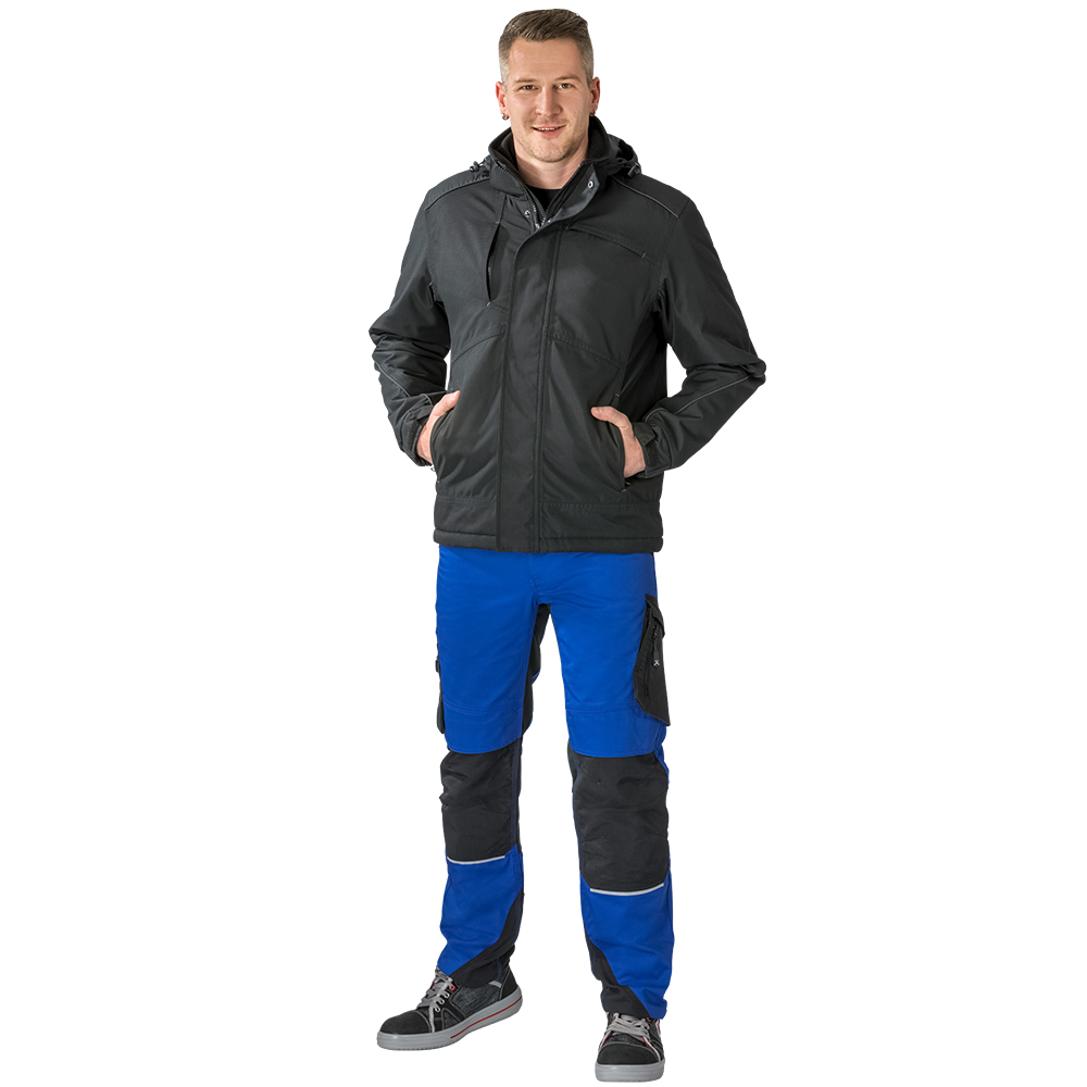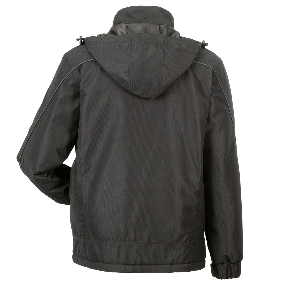 schwarze Reflexbiesen an den Ärmeln, Schultern und im Rückenbereich