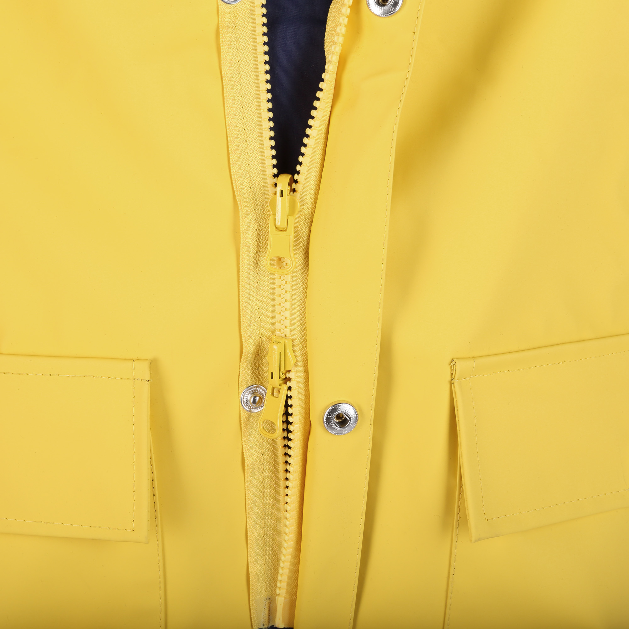 Der gute, alte Friesennerz ist der Klassiker unter den Regenmänteln und perfekt geeignet für Küstenwetter. Dabei kommt der Ostfriesennerz gar nicht aus Ostfriesland – noch nicht einmal aus Deutschland. Anders als vermutet stammt das Original aus Dänemark, wo es 1965 von Jan E. Ansteen Nielsson erfunden hat. Knallgelb und mit Klappen über den großen Taschen hebt sich die Regenjacke seitdem gegen graue Gewitterwolken ab. Und hat sich nicht nur bei Strandspaziergängen bewährt, sondern auch bei Fahrradfahrten in urbaner Umgebung.