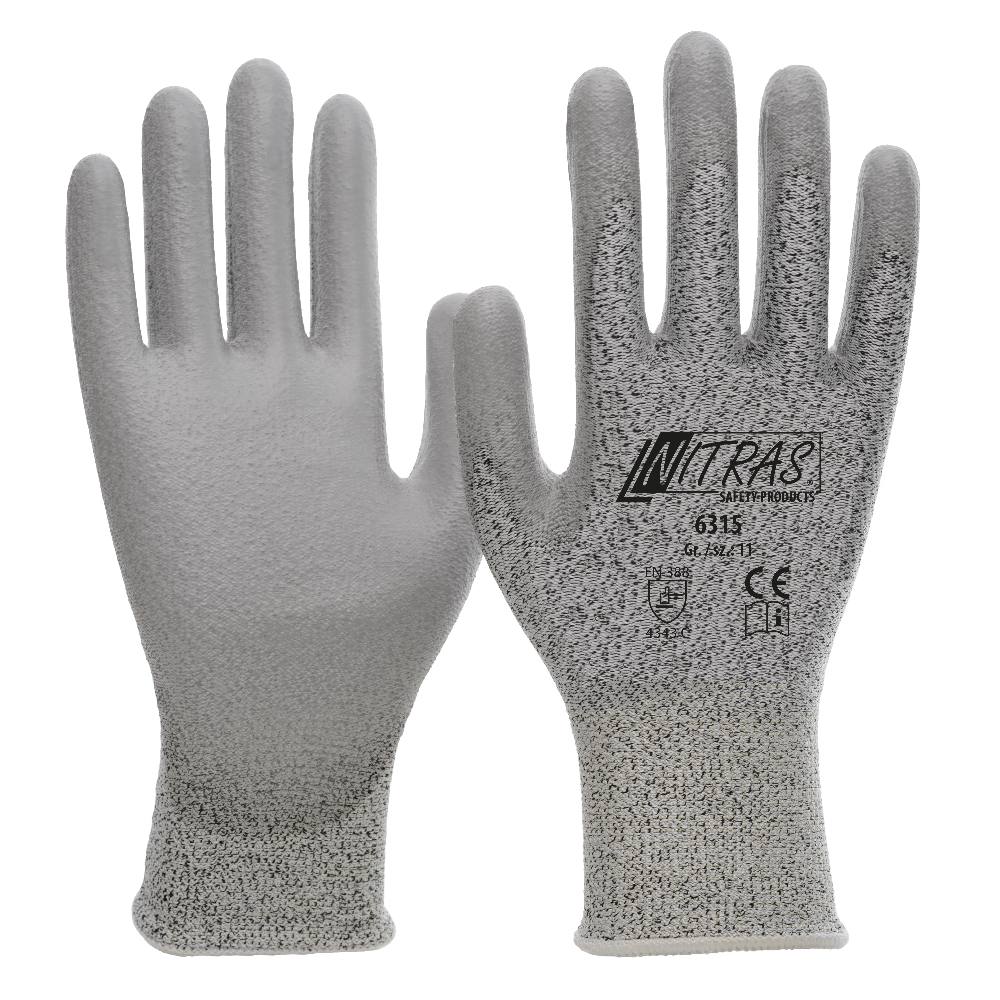 NITRAS Schnittschutzhandschuhe, Spezialgarn, grau, PU-Beschichtung, grau, teilbeschichtet auf Innenhand und Fingerkuppen, Strickbund, hoher Schnittschutz, höchster Tragekomfort