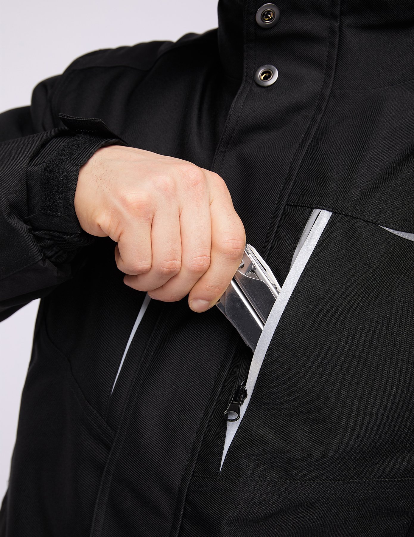 zwei eingesetzte vertikale Brusttaschen mit reflektierendem Reißverschluss
