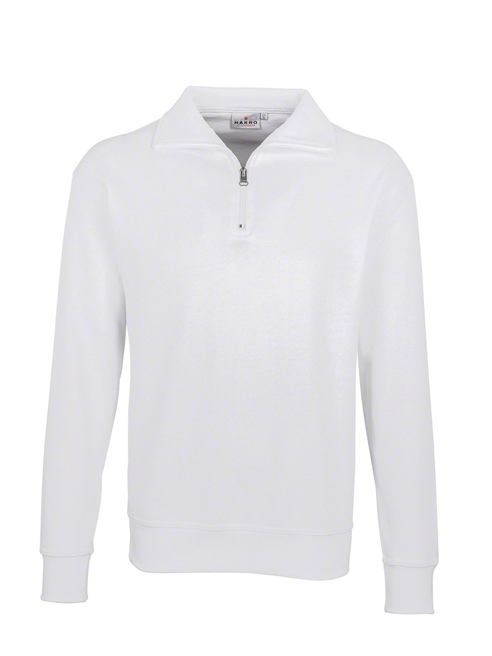 Klassischer Troyer mit hochwertigem Reißverschluss von YKK®, formstabilen Bündchen mit LYCRA®-Anteil, nicht angerauter Innenseite (French-Terry) und Nackenband. Hergestellt aus pflegeleichter Baumwoll-Polyester-Mischung für höchste Ansprüche. Gewebtes HAKRO Necklabel aus hochwertigem Kettsatin mit weichen, ultraschallgeschnittenen Bandkanten für höchsten Tragekomfort und gewebtes HAKRO Flaglabel an der linken Seitennaht.